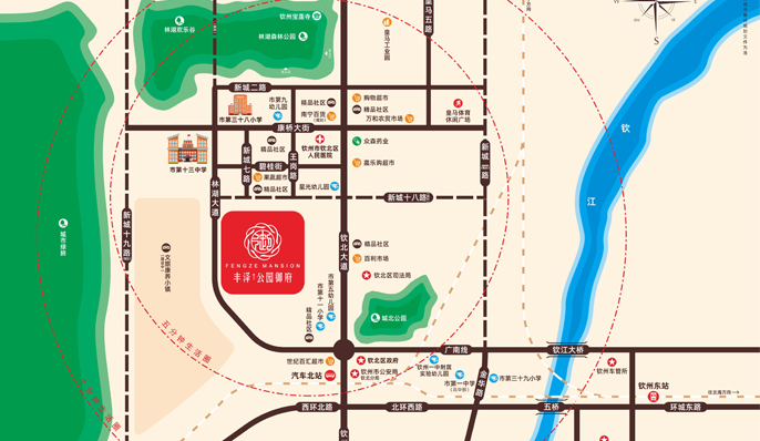 项目占据钦北区通往主城区的门户位置,既拥有新区的政策红利,又能坐享老城区的醇熟生活配套。东靠贯通城市南北的黄金要道——钦北大道,向北通达皇马工业园,向南快速链接繁华老城区;西临林湖大道,瞬时到达城市重要客运枢纽——钦州汽车北站。钦州汽车北站扼守林湖大道桥头堡位置,多趟客运专线与各大目的地之间实现快捷连通。立体交通路网,成就高效城市生活圈。