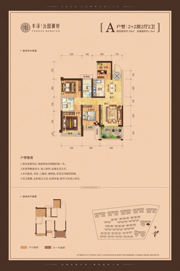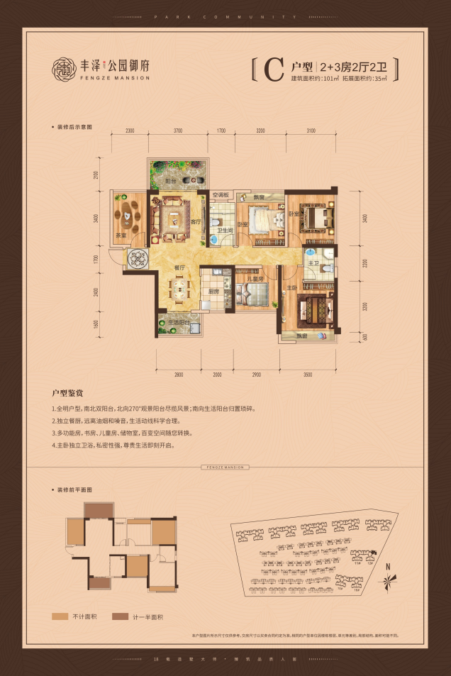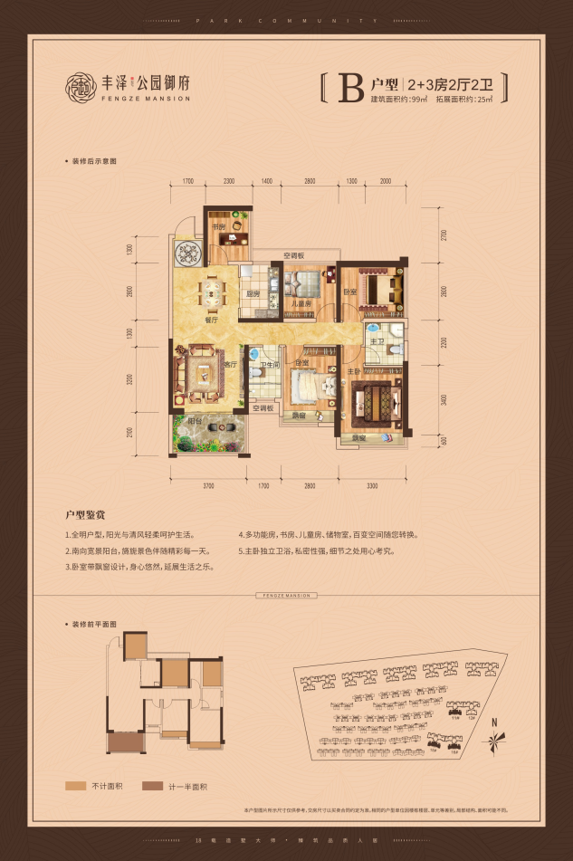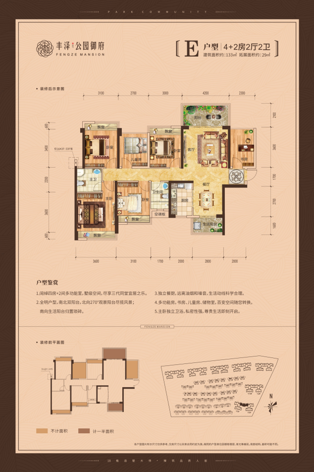 丰泽集团潜心研究钦州地理气候及人居习惯,在提升户型舒适度和实用度的同时,充分考虑到家庭成长对空间的不同需求,拓展更多面积。88㎡四房、99㎡五房、133㎡六房!基本每个户型能在相同建筑面积下多得两间房,书房、儿童房、健身房、娱乐房、客房……随家庭需要设计。也为每户充分营造良好的景观视野与自然采光,实现室内外空气良好循环,带来更生态幸福的居住环境。
