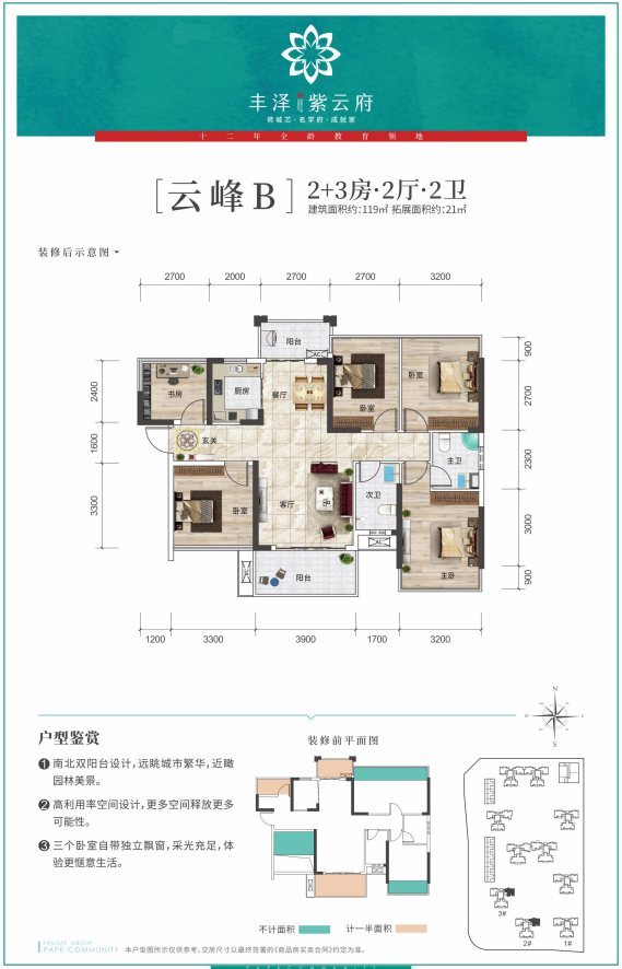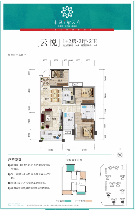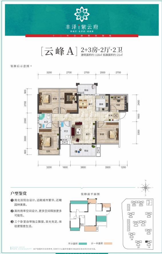 项目首期推出的约78㎡精致三房、98㎡完美四房、118平方米轻奢五房,采用全+2房设计,同面积下,多享2个房间的优势。先进的户型设计,极高的使用空间,更贴近消费者的家庭居住诉求。