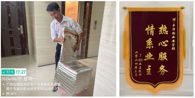 业主吴先生表示,这一场家宴非常必要,真情满满。吴先生在装修过程中,因为自己腰部受伤,没办法搬运红木家具等大件物品,试着给丰泽物业说了一下。物业人员知道后立马找人过来搬抬东西,将茶几、桌椅搬到吴先生家里摆放好,还详细询问有没有其他需求,吴先生非常感动,事后特意送了锦旗给到物业。除此之外,丰泽物业还给到业主别墅级的物业管家服务和贴心服务,业主有事不能回家,需要帮忙照顾宠物或者浇水浇花等,生活中很小的细节,丰泽物业都把它做到位,让业主们放心、舒心。“真的是有求必应,解决了大家的急事、难事!而且默默付出不求回报,这在很多小区都要收费两三百的搬运服务,他们物业人员二话不说就帮我搬了,我真的很感动!”吴先生聊起之前搬家的事情,感激之情溢于言表。