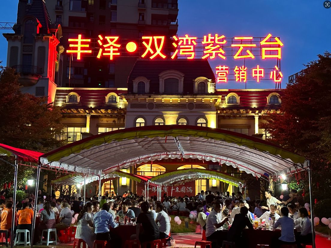 18点,晚宴火热开启。一片热烈的掌声响起,业主代表王先生进行发言,他提到这是一场由业主发起,开发商和物业积极支持的家宴活动,对于我们来说意义重大,特别是在这个艰难的房地产市场大环境下更显得尤为珍贵。丰泽·双湾紫云台从交房到装修、入住过程中,开发商和物业的各项服务工作,获得了业主们的高度认可,这一场家宴,不仅是业主们庆祝入住新家的欢喜,更是感谢开发商和物业的关心和支持。