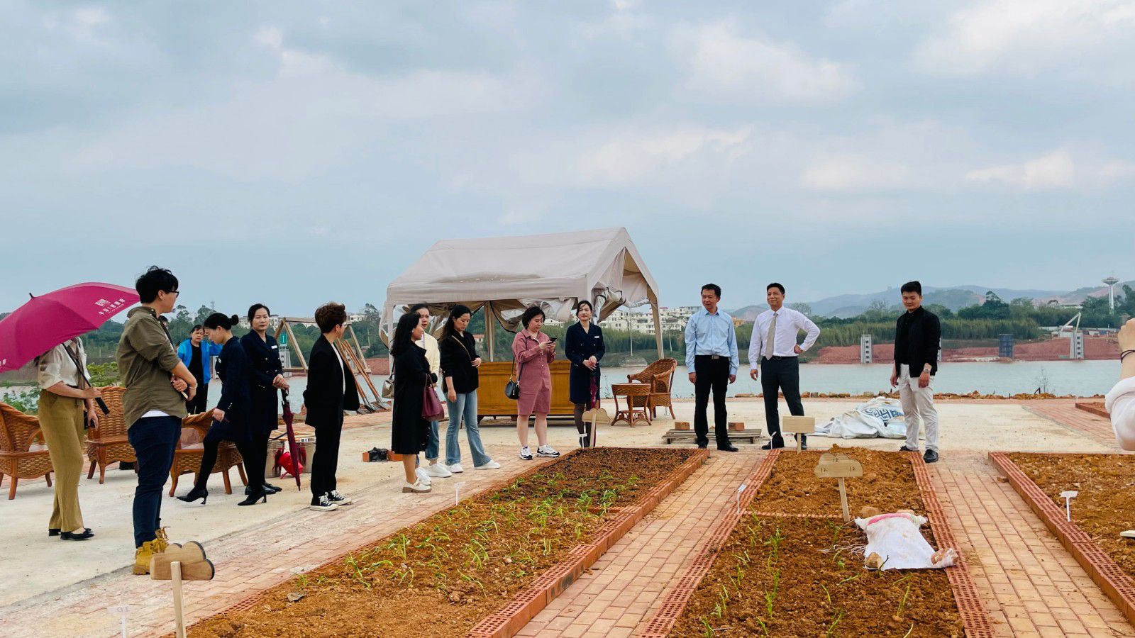 随后,大家在丰泽·紫微府项目营销负责人的带领下,前往邕江畔参观紫微府·野宿牧场、紫微府·开心农场实习实训基地现场,了解基地概况及未来发展规划。