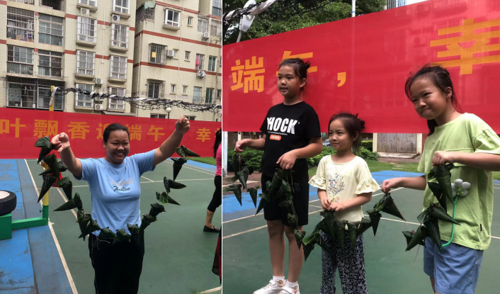 现场来了很多小朋友,跟着大人学包粽子,跟小伙伴们比赛谁包的好看,“我喜欢吃红豆的,还有板栗!”“我们家喜欢吃咸的,我奶奶最会包粽子了,超级好吃”“小时候我都是看我妈包,自己包起来才知道原来这么难”,小朋友争相学习和讨论,大家都在聊着关于端午节和粽子的趣事,没过多久,一个个饱满的粽子就出现在粽子架上,大家都收获满满。