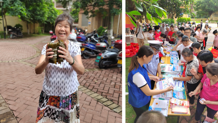 梧州丰泽·半山华府小区除了包粽子活动之外,兴龙街道办事处还联合了治安大队,进行反诈骗、反邪教、消防宣讲等活动内容,还邀请了文化馆进行丰富的文艺演出,现场欢声笑语,其乐融融。
